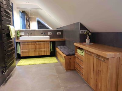Am Morgen unter der Dusche fit für den Tag, am Abend im Whirlpool entspannen. Bäder werden immer mehr zum wichtigsten Wellnessraum, teilweise sogar zu einem Spa-Zentrum. Ob neues Bad oder Badsanierung, der erste und wichtigste Schritt sollte immer die professionelle Planung sein mit Berücksichtigung aller Anschlüsse, Form der Badewanne, Dusche, Waschbecken, WC, Lichtquellen, Badmöbel, Fliesen.. Jedes Bad ist anders. Jedes Bad ist individuell.